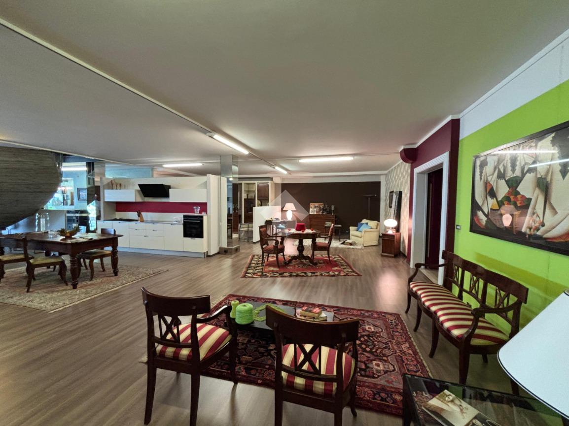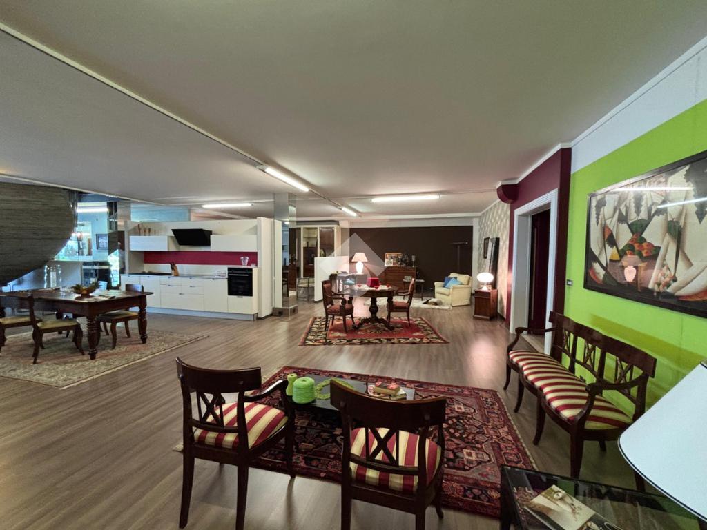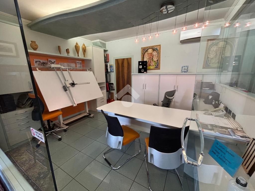 La soluzione, distribuita su due livelli, si compone di un piano terra con ingresso indipendente vetrinato su generoso open space di 300 mq, ad oggi utilizzato come show room, 3 locali ad utilizzo ufficio e 3 servizi igienici.