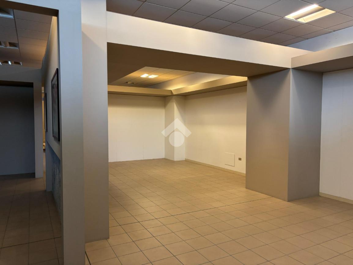 La soluzione, distribuita su un unico livello, si compone di un ingresso su ampio open space, diviso attualmente da pareti rimovibili e ad oggi adibito a show room di elementi di arredo.