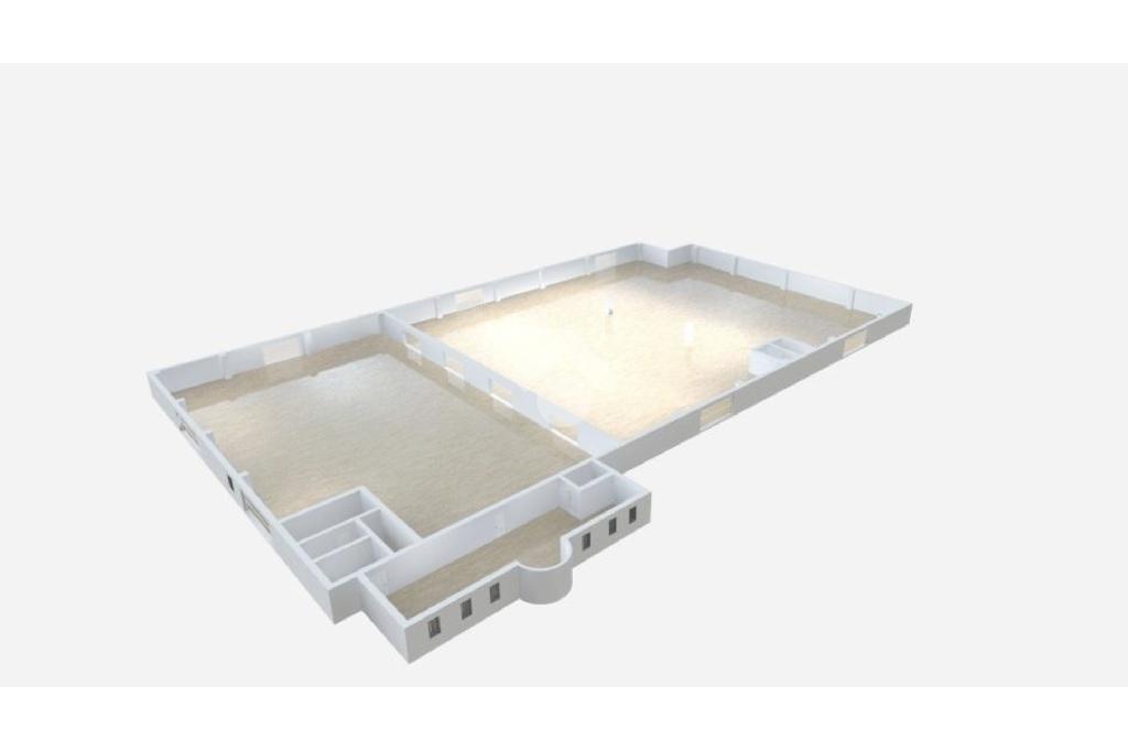 Il primo di 835 mq con altezza utile di 8,40 mt sottotrave, comprensivo di un'area ad utilizzo ufficio oltre che di una zona spogliatoi e bagni a servizio dell'attività, a seguire un secondo blocco di 1713 mq.