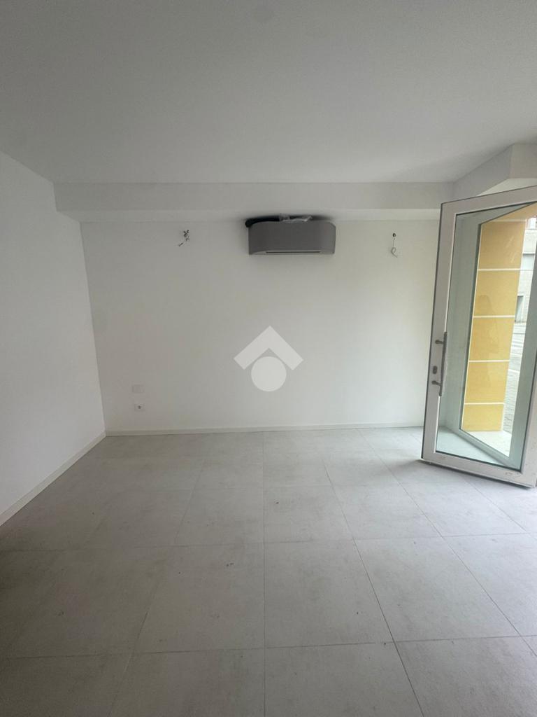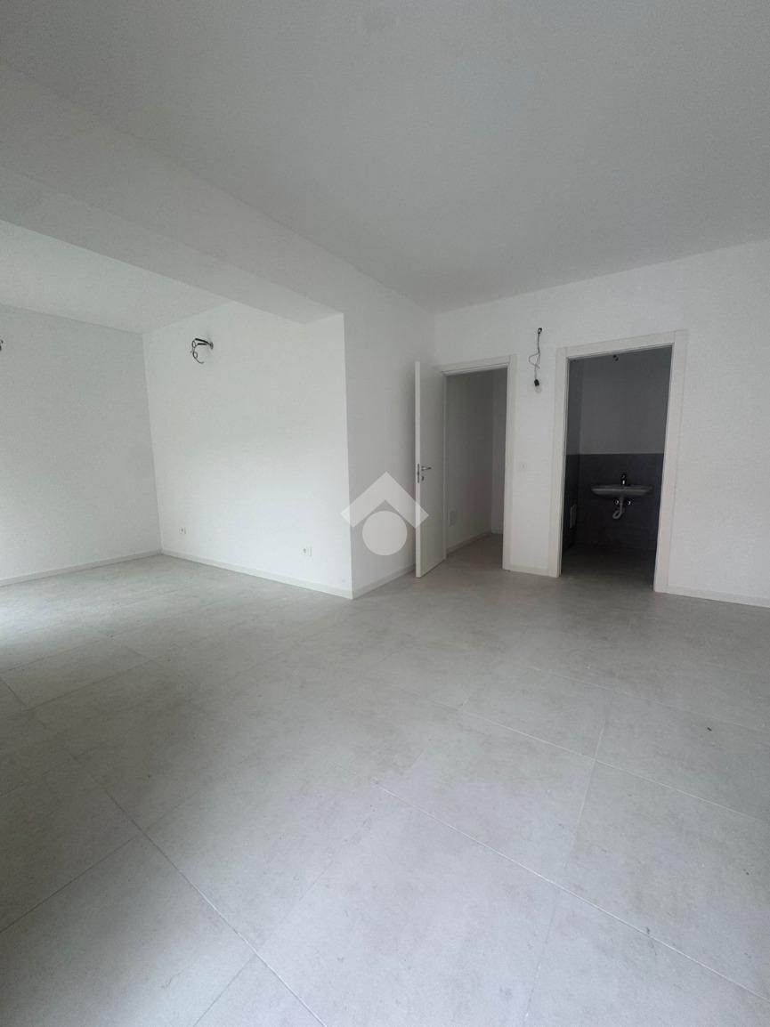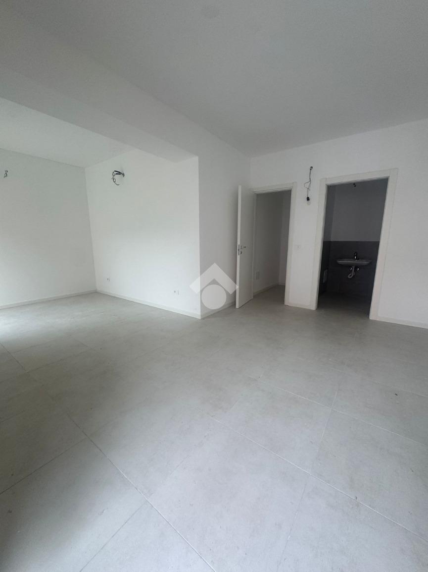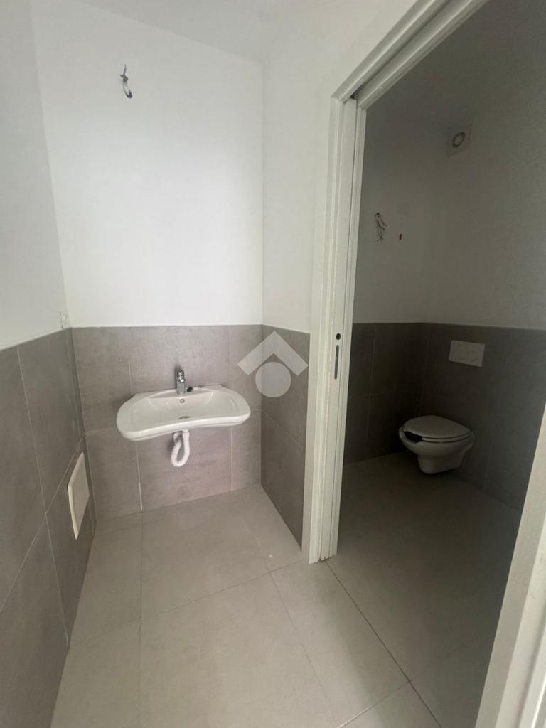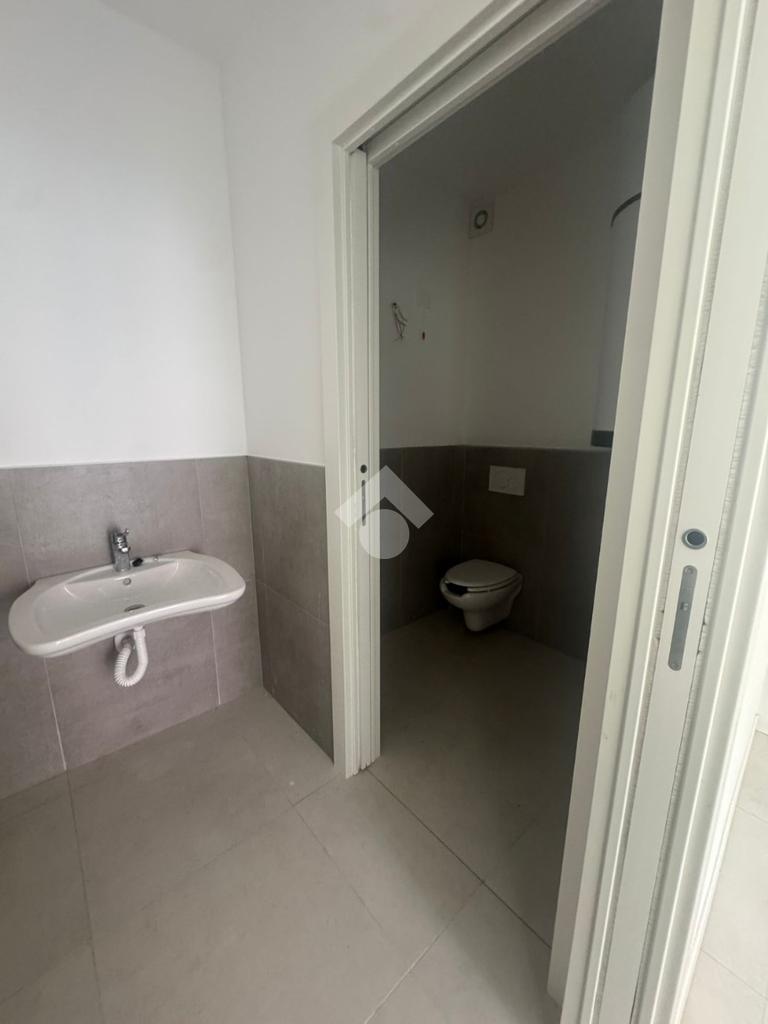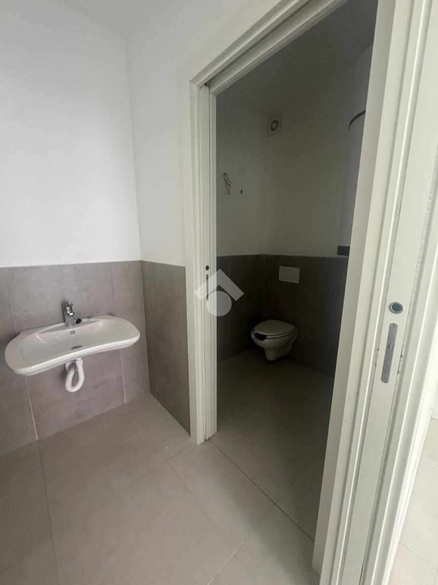 La soluzione si compone di ingresso vetrinato su open space e servizio igienico.