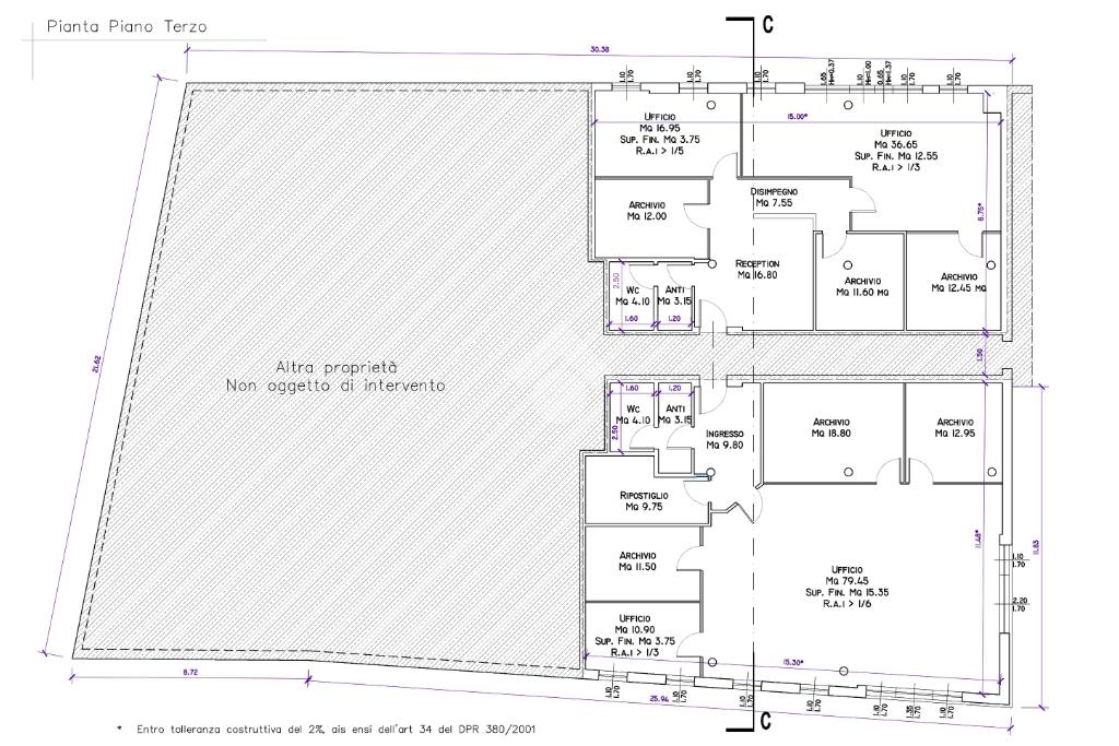 L'immobile si presenta attualmente in fase di ristrutturazione e si compone di ingresso su reception, 2 locali ad uso ufficio completamente cablati ed ulteriori 4 locali di diversa metratura ad uso archivio.