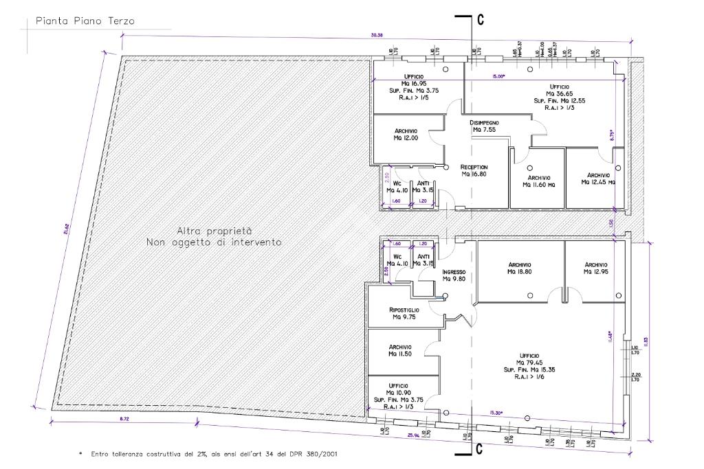 L'immobile si presenta attualmente in fase di ristrutturazione e si compone di ingresso su 2 ampi locali ad uso ufficio completamente cablati, ed ulteriori 4 locali ad uso archivio di diversa metratura.