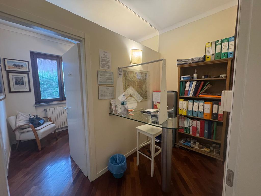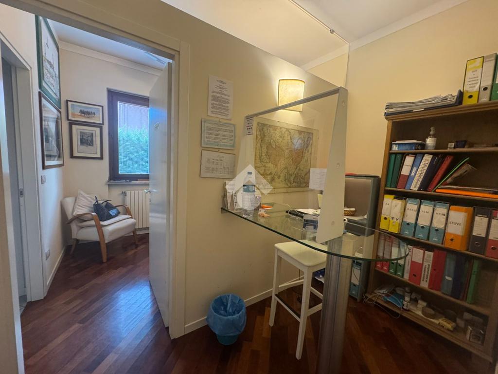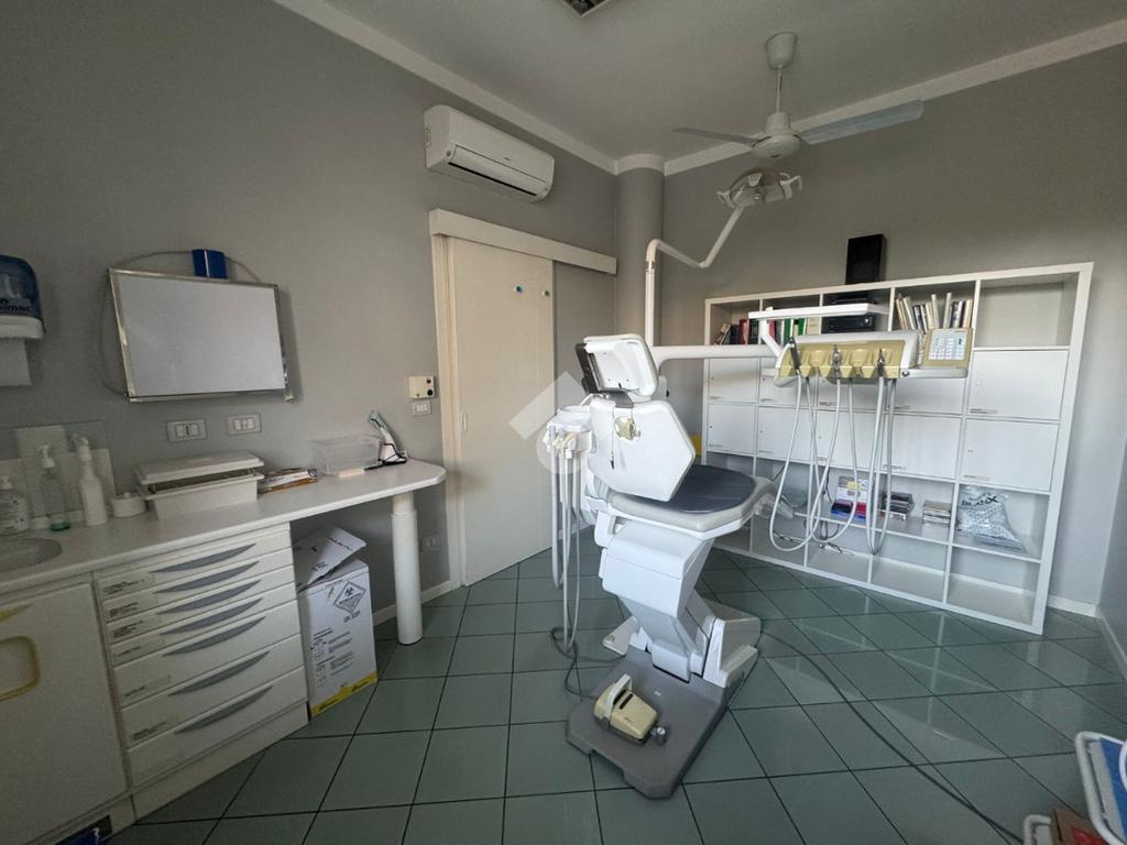 L'immobile si sviluppa su un unico piano ed è internamente composto da un ingresso su sala d'attesa, tre studi, due ripostigli e doppi servizi con antibagno.
